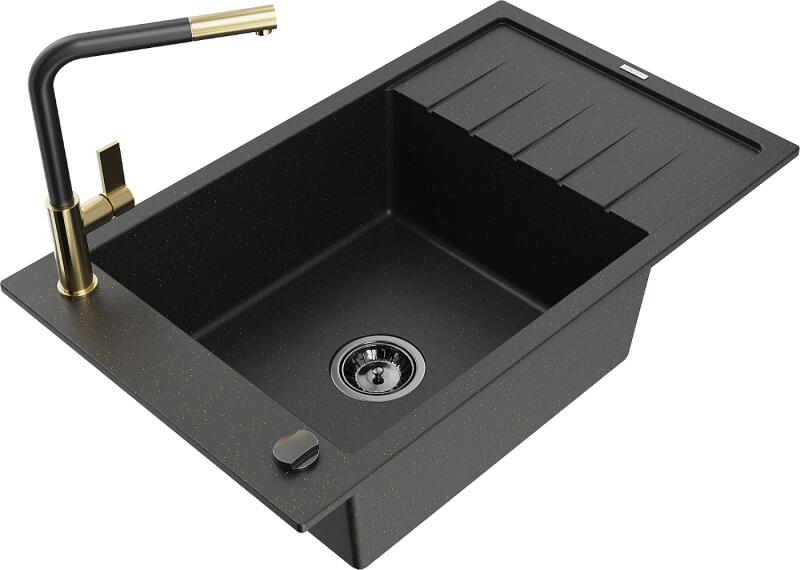 Mexen Elias konyhai mosogató: Gyártó: Mexen Sorozat: Elias Modell: 1 kamrás Beépítés: felülről a munkalapba süllyesztve Méretek: 795x480x200 mm Kamra mélysége: 190 mm Kamra mérete: 465x420 mm Lefolyó átmérője: 90 mm Szifon + automatikus leeresztő csavar Anyaga: gránit (80% gránit - kő, 20% gyanta) Sima felület a könnyű tisztítás érdekében: igen Megnövelt ellenállás