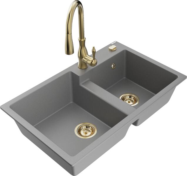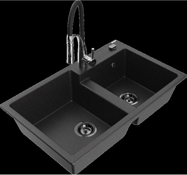 Mexen Tomas, gránit mosogató 800x500x190 mm, 2 kamrás és Savita mosogató csaptelep, szürke, 6516-71-672601-50 A konyhai mosogató műszaki adatai: Gyártó: Mexen Sorozat: Tomas Modell: 2-kamrás csepptálca nélkül Beépítés: a munkalapba való beágyazáshoz Szín: szürke Felület: sima Hossza 800 mm Szélesség 500 mm Magasság: 190 mm Kamra mélysége: 180 mm (nagyobb), 180 mm (kise