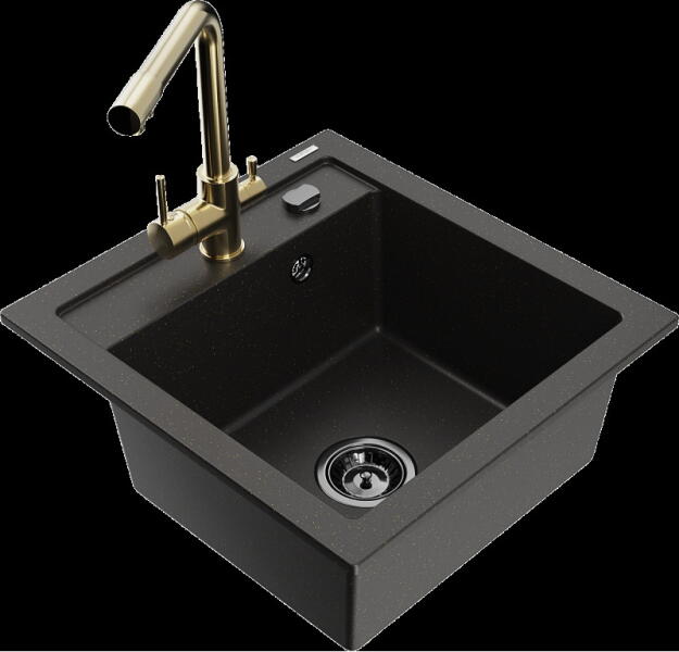 Mexen Diego konyhai mosogató: Gyártó: Mexen Sorozat: Diego Modell: 1 kamrás Beépítés: felülről a munkalapba süllyesztve Méretek: 488x488x167 mm Kamra mélysége: 157 mm Kamra átmérője: 406 mm Lefolyó átmérője: 90 mm Szifon + automatikus leeresztő csavar Anyaga: gránit (80% gránit - kő, 20% gyanta) Sima felület a könnyű tisztítás érdekében: igen Megnövelt ellenállás