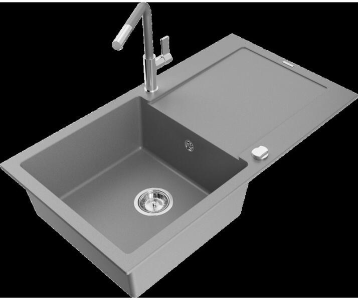 Pablo konyhai mosogató: Gyártó: Mexen Sorozat: Pablo Méretek: 752x436x161 mm Kamra mélysége: 151 mm Kamra méretei: 356x332 mm Lefolyó átmérője: ø90 mm Típus: 1 kamrás csepegtetővel Típus: a pultba süllyesztve Anyaga: gránit (80% gránit adalékanyag 20% gyanta) Túlfolyó lyuk: igen Lyukak: 2 (1 lyuk az akkumulátorhoz, 1 lyuk az automatikus szifondugó vezérléséhez) Be