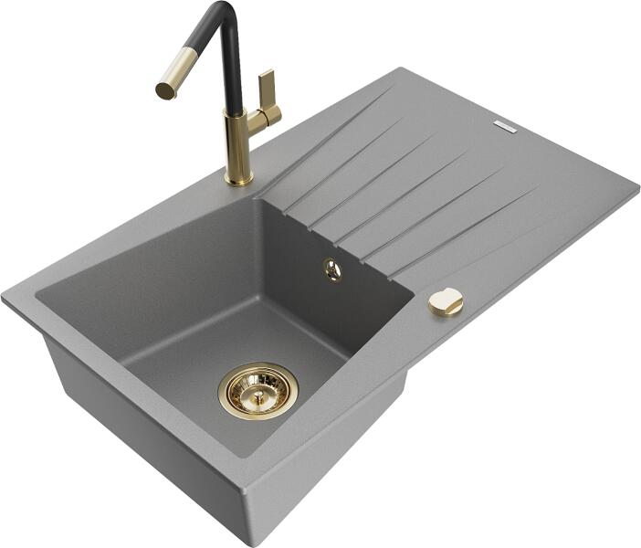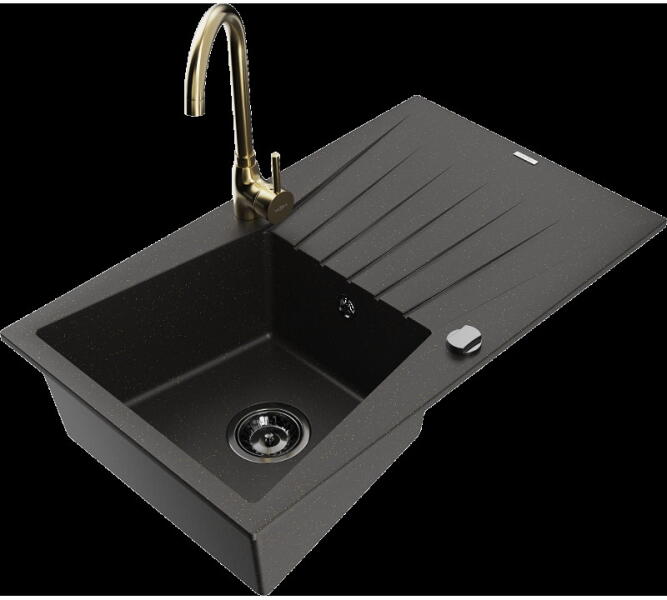 Mexen Milo konyhai mosogató: Gyártó: Mexen Sorozat: Milo Modell: 1 kamrás Beépítés: felülről a munkalapba süllyesztve Hossza 435 mm Szélesség 410 mm Magasság: 171 mm Kamra mélysége: 161 mm Kamra mérete: 375x280 mm Lefolyó átmérője: 90 mm Szifon + automatikus leeresztő csavar Anyaga: gránit (80% gránit - kő, 20% gyanta) Sima felület a könnyű tisztítás érdekében: igen