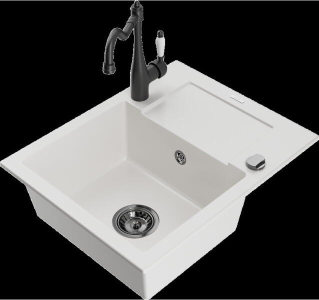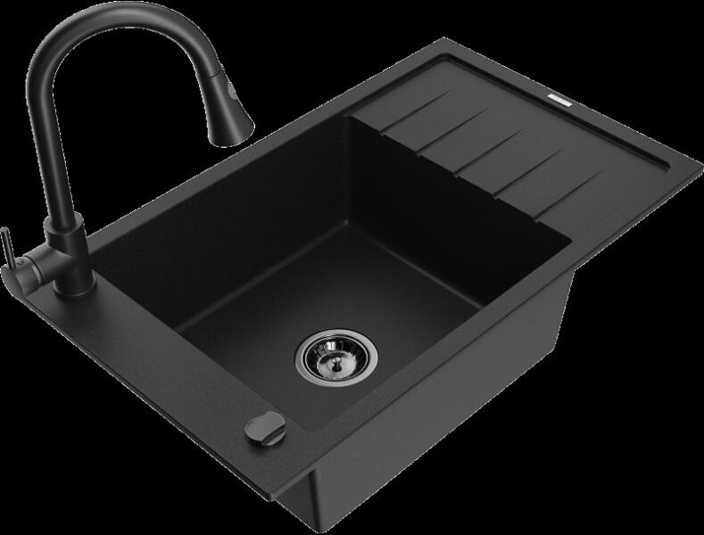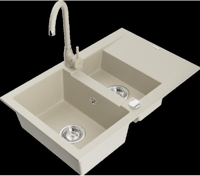 Gyártó: Mexen Sorozat: Bruno + Duo Mosogató: Mérete: 795x495x200 mm Kamra - mélység: 200 mm Kamra méretei: 440x360 mm Kimeneti átmérő: ø90 mm Típus: 1 kamrás csepegtetővel Mosogató típusa: a munkalapba való beágyazáshoz Anyaga: gránit (80% gránit adalékanyag 20% gyanta) Túlfolyó nyílás: Igen Lyukak: 2 (1 lyuk a mosogató csapjához, 1 lyuk az automatikus leeresztő