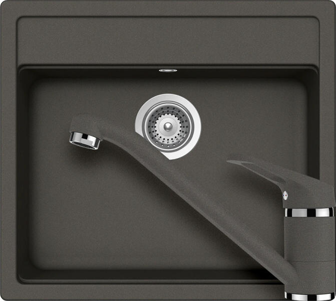 Schock Nemo N-100 konyhai mosogatótálca Cristalite Asphalt 570 x 510 mm, gránit, hagyományos beépítés, aszfaltszürke munkalapba beépíthető, egymedencés, csepegtető nélküli, ideálisan illeszkedik a minimum 60 cm-es alsószekrényhez. A csaptelep helye előre elkészített, könnyedén áttörhető. A csomagban találja a használati útmutatót, amely részletes leírást ad a csapt