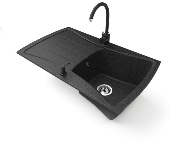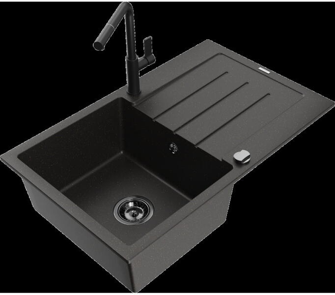 NERO Malta gránit mosogató, ami egyesíti a praktikus megoldást a bőséges helykínálattal és a harmonikus designnal. Méretes, 36 x 38 cm-es, medencével és kellően nagy csepegtető résszel rendelkezik, arányosan kialakítva. Minden igényt kielégít ami egy mosogatótól elvárható, amihez mindössze 78 cm hely szükséges. Egyenes és hajlított vonalvezetés harmonikus keveréke je