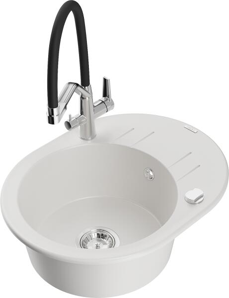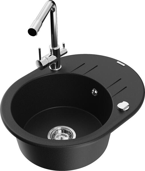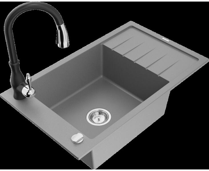 Gyártó: Mexen Sorozat: Bruno + Duo Mosogató: Mérete: 795x495x200 mm Kamra - mélység: 200 mm Kamra méretei: 440x360 mm Kimeneti átmérő: ø90 mm Típus: 1 kamrás csepegtetővel Mosogató típusa: a munkalapba való beágyazáshoz Anyaga: gránit (80% gránit adalékanyag 20% gyanta) Túlfolyó nyílás: Igen Lyukak: 2 (1 lyuk a mosogató csapjához, 1 lyuk az automatikus leeresztő