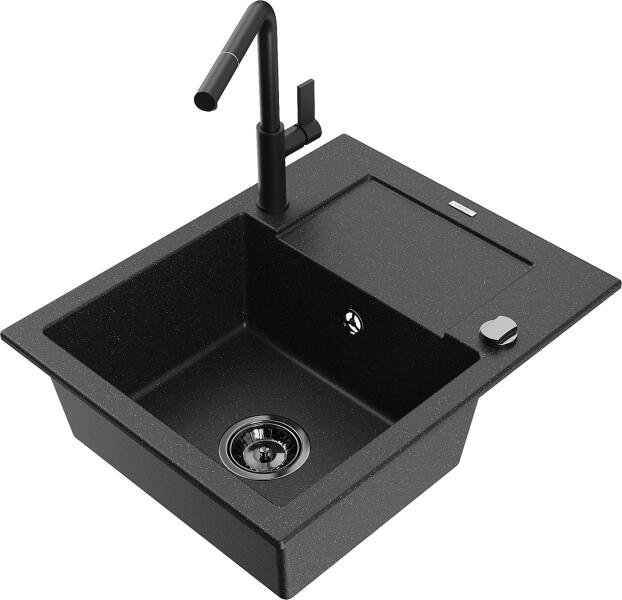 Mexen Enzo konyhai mosogató: Gyártó: Mexen Sorozat: Enzo Modell: 1 kamrás, rövid csepegtetővel Hossz: 576 mm Szélesség: 465 mm Magasság: 174 mm Kamra mélysége: 164 mm Kamra mérete: 395x320 mm Szifon + automatikus leeresztő csavar Anyaga: gránit (80% gránit - kő, 20% gyanta) Megnövelt ellenállás az ütésekkel, karcolásokkal, elszíneződésekkel, magas hőmérséklettel és hő
