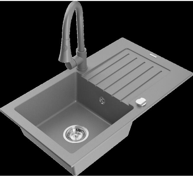 Mexen Cesar konyhai mosogató: Gyártó: Mexen Sorozat: Cesar Modell: 1 kamrás Beépítés: felülről a munkalapba süllyesztve Méretek: 775x470x190 mm Kamra mélysége: 180 mm Kamra mérete: 410x355 mm Lefolyó átmérője: 90 mm Szifon + automatikus leeresztő csavar Anyaga: gránit (80% gránit - kő, 20% gyanta) Sima felület a könnyű tisztítás érdekében: igen Megnövelt ellenállás