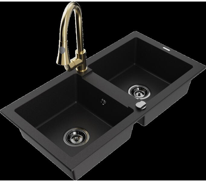 Gyártó: Mexen Sorozat: Mario + Savita Mosogató: Méretek: 820x436x161 mm Kamra - mélység: 151 mm Kamra méretei: 356x336 mm Kimeneti átmérő: ø90 mm Típus: 2 kamrás Mosogató típusa: a munkalapba való beágyazáshoz Anyaga: gránit (80% gránit adalékanyag 20% gyanta) Túlfolyó nyílás: Igen Lyukak: (1 lyuk a mosogató csaptelepéhez, 1 lyuk az automatikus leeresztő csavar szabály