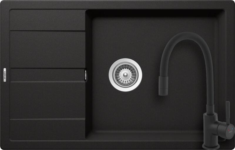 Schock Ronda D-100XL Gránit Mosogató 780 x 500 mm Nero Cristalite munkalapba beépíthető, egymedencés, megfordítható, csepegtetővel ellátott, ideálisan illeszkedik a minimum 60 cm-es alsószekrényhez. A csaptelep helye előre elkészített, könnyedén áttörhető. A csomagban találja a használati útmutatót, amely részletes leírást ad a csaptelep helyének megfelelő módon tör