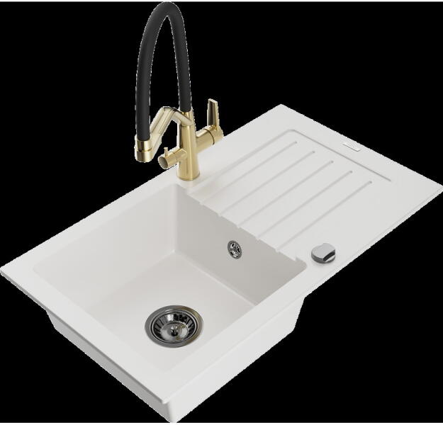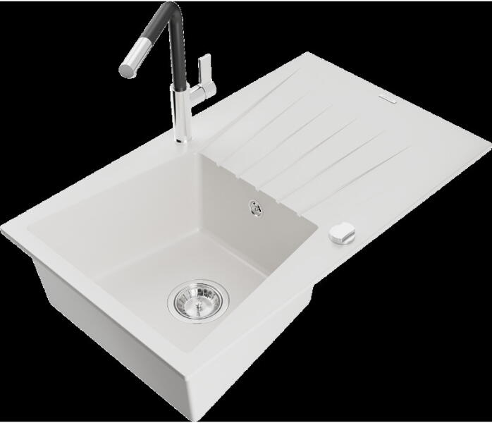 Leo konyhai mosogató: Gyártó: Mexen Sorozat: Leo Modell: 1-kamrás s csepegtetővel Hossza 900 mm Szélesség 500 mm Magasság: 190 mm Kamra mélysége: 180 mm Kamra mérete: 430x415 mm Alkalmas 500 mm-es szekrényekhez Szifon + automatikus leeresztő csavar Anyaga: gránit (80% gránit - kő, 20% gyanta) Sima felület a könnyű karbantartás érdekében: igen Megnövelt ellenállás az ütés