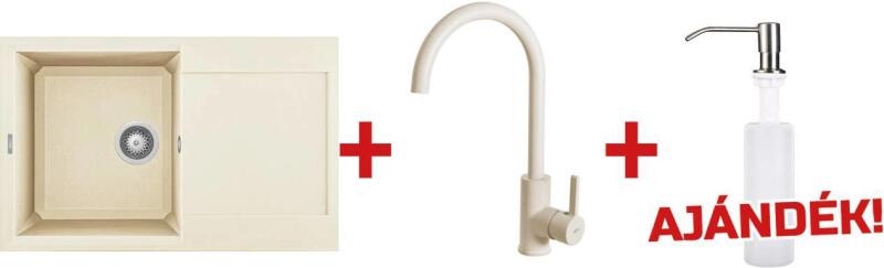 Részletes leírás Elleci akciós szett ajánlat: mosogatótálca+csaptelep ajándék mosogatószer-adagolóval. A SZETT TARTALMA Elleci Easy 300 G62 Bianco Antico mosogatótálca 1 medencés mosogatótálca csepegtetővel, munkalapra szerelhető, anyaga: granitek, színe: G62 bianco antico, mosogatótálca mérete: 790x500 mm, medence mélysége: 220 mm, tartozékok: helytakarékos szifon, szűr