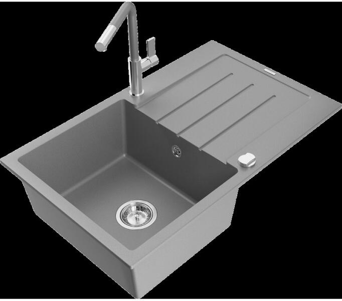 Mexen Pablo konyhai mosogató: Gyártó: Mexen Sorozat: Pablo Modell: 1 kamrás Beépítés: felülről a munkalapba süllyesztve Méretek: 752x436x161 mm Kamra mélysége: 151 mm Kamra mérete: 356x332 mm Lefolyó átmérője: 90 mm Szifon + automatikus leeresztő csavar Anyaga: gránit (80% gránit - kő, 20% gyanta) Sima felület a könnyű tisztítás érdekében: igen Megnövelt ellenállás