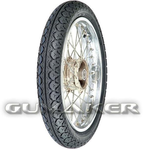 Modern utcai mintázat első és hátsó kerékre egyaránt, jól karbantartott utakra. Peremátmérő (inch) 16Névleges szélesség (inch vagy mm) 3,50Magasság (%) -Alkalmazás utcaiPozíció első/hátsóEgyéb jellemző (vagy talajtípus) -Típus TTGyártó Vee RubberTerhelhetőségi mutató 66 (300kg)Sebesség szimbólum P (150 km/h, 93 mph/h)Legnagyobb nyomás (kPa) -Abroncs tömege (kg) 3,