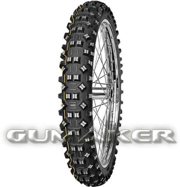 A Mitas Terra Force-EF Super gumiabroncsokat sárga csíkkal jelölik, tartós, hosszú élettartamú gumi vegyületből készülnek, amely biztosítja a kiváló tapadást és magas kopásállóságot kemény terepen is. Ellenáll a szakadásnak, vágásoknak, terep típusok széles skáláján használható lágy és enyhén sziklás talajon. A futófelületi mintázat kialakítása megfelel a F