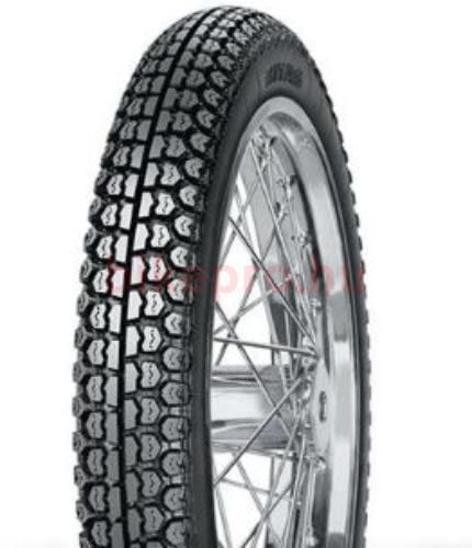 Mitas H03 18 x 3,0 motorkerékpár külső gumi, 52P, TT, 2930g A futófelület mintázata első és hátsó kerékre egyaránt alkalmas, kevésbé karbantartott utakon. Peremátmérő: 18 col Szélesség / magasság: 3,0 col Terhelhetőségi mutató: 52 (200 kg) Sebesség szimbólum: P (150 km/h) Kialakítás: TT (belső használatával) Legnagyobb nyomás: 2,8 bar Tömeg: 2,93 kg Egyéb jellemz