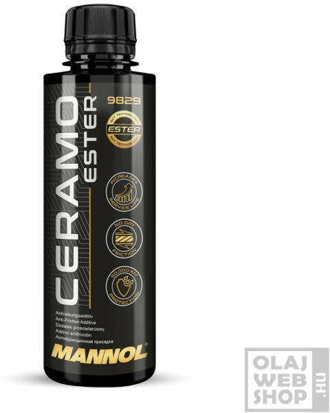 észteres, bór nitrides súrlódás és kopáscsökkentő motorolajadalék A Mannol 9829 Ceramo Ester 250 ml egy innovatív motorvédő szer szintetikus vegyületétereken - észtereken (group V-ös bázisolajok) és hexagonális bór-nitrid mikroszemcséken h-BN (fehér grafit) alapuló - kopás- és súrlódásgátló adalék olajfürdős kuplung nélküli motorolajokhoz (súrlódó tengelykapc