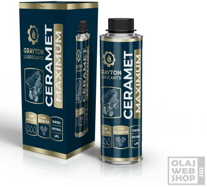 kerámia alapú adalék 50.000 km-re 5L motorolajhoz A Grayton Ceramet Maximum egy kerámia alapú olajadalék, amely a fémfelületbe épülve növeli a felületek kopásállóságát – akár 50.000 kilométeren keresztül, ezáltal lényegesen meghosszabbítja a fémfelület élettartamát. Csökkenti a súrlódást, a kopást és a motorzajt. Csökkenti az üzemanyag fogyasztást és javítja