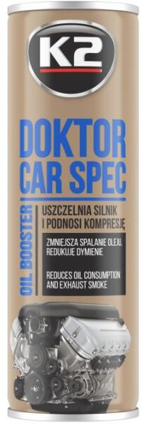 A K2 DOKTOR CAR SPEC a legújabb „NANOTECH technológia felhasználásával lett kifejlesztve és gyártva. Tulajdonságainak köszönhetően jelentősen minimalizálja a motor szivárgását. Növeli az olajfilm vastagságát, hozzájárulva az olajfogyasztás csökkentéséhez intenzív motorműködés közben. A termék kiválóan ellenáll a hőmérséklet-változásoknak és a szintetikus o