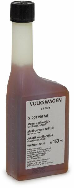 Eredeti VW Audi többcélú dízel üzemanyag adalék megszünteti a lerakódásokat az üzemanyagrendszerben (vezetékekben) tisztítja az égésteret és az injektorokat (szivattyú-befecskendező elem) keni a mozgó alkatrészeket erőteljes motorteljesítményt biztosít védi a motort a kopás ellen minimalizálja a kipufogógázok szennyezőanyag-kibocsátását tartsa be a biztonsági és a