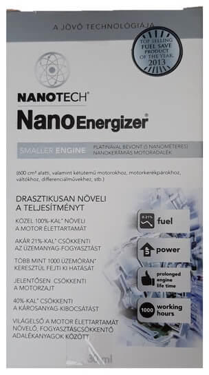 NanoEnergizer Smaller Engine kisebb motorokhoz. Alkalmazhatósági köre: motorkerékpár, sebességváltó, differenciálmű, generátor, kompresszor, kerti gépek és más, 600cm3 alatti motorok esetében. Nano kerámia bevonat technológia a motor kopás és védelem érdekében: üzemanyag-megtakarítás 8-21% -ig, 5%-al csökkentette a zaj- és rezgésszinteket, visszaállítja a súrlódási