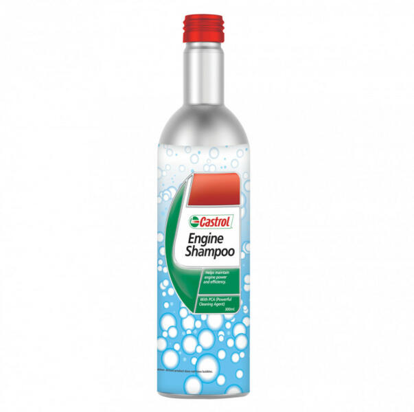 A Castrol Engine Shampoo a motor olajcsere előtti ápolásához készült. Erőteljes tisztítóanyagot (PCA-t) tartalmaz, amely a motorban lévő iszapot eltávolítja, közrefogja a szennyező részecskéket, így elősegítve zavartalan kiürülésüket, továbbá megtisztítja és előkészíti a motort a friss olaj befogadására. 300 ml termék maximálisan 6L motorolaj kapacitáshoz elegen