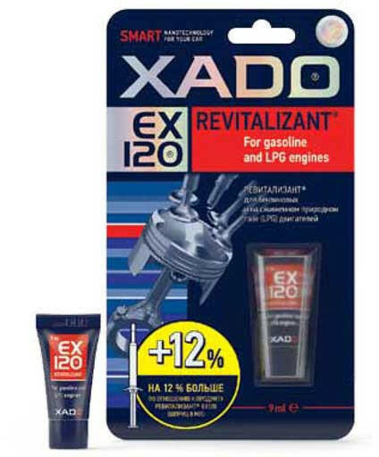 Xado 10335 EX120 revitalizáló gél benzines és LPG motorokhoz, 9ml Helyreállítja a henger-dugattyú kapcsolat kopását és védi a felületeket a további kopástól Jelentősen csökkenti az üzemanyag-fogyasztást (üresjáratban akár 30% -kal) Növeli az olajnyomást Kiegyenlíti és növeli a hengerek kompresszióját Növeli a motor teljesítményét, javítja a motor gyorsító képes