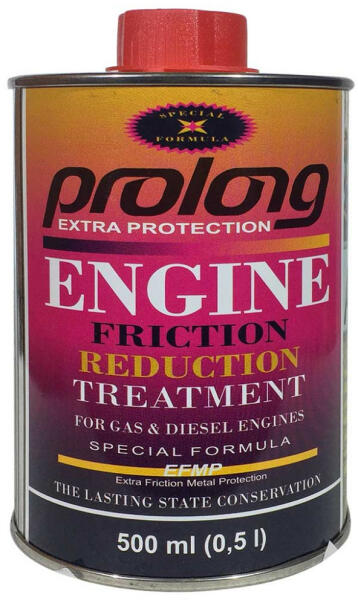 Prolong súrlódáscsökkentő és élettartam-növelő motorolaj-adalék, 500ml A Prolong egy szabadalmazott kenőanyag, amely a normális kenést egy lépéssel előbbre viszi. Fontosabb jellemzői: - Drasztikusan csökkenti a súrlódást és a kopást. - Növeli a teljesítményt. - Csökkenti az üzemanyag fogyasztást. - Gondoskodik az indítás utáni azonnali kenésről. - Ásványi és sz
