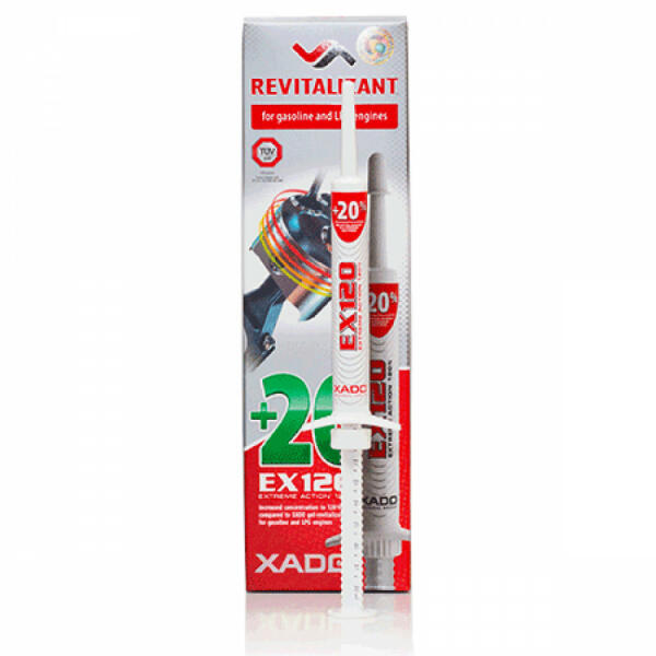 Termék részletekrevitalizáló gél benzin motorokhoz XADO 12035 díszdobozos kiadás A Xado EX120 revitalizáló adalék minden típusú benzin- és LPG üzemű személygépjármű motorhoz fecskendős kiszerelésben, +20% hatóanyag tartalommal. Csökkenti a felületi súrlódást és növeli az élettartamot; Helyreállítja az alkatrészek eredeti alakját; Csökkenti az üzemanyag-fogyasztást; Növeli az ol