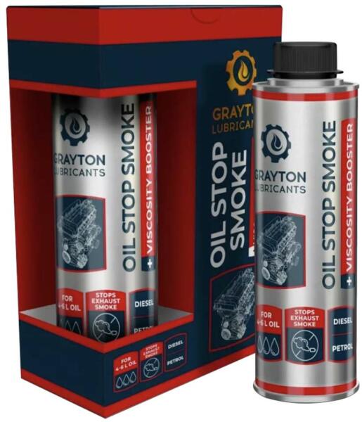 Grayton Oil Stop Smoke füstöléscsökkentõ és viszkozitás stabilizáló motorolaj adalék, 250ml Az Oil Stop Smoke összetételételének köszönhetõen megállítja a túlzott olajégetés miatti kipufogó füstöt. A termék kémiai polimerek, viszkozitási index javítók, antioxidánsok, korróziógátlók habzásgátlók és mosó-/diszpergálószerek kombinációját tartalmazza. Elõ