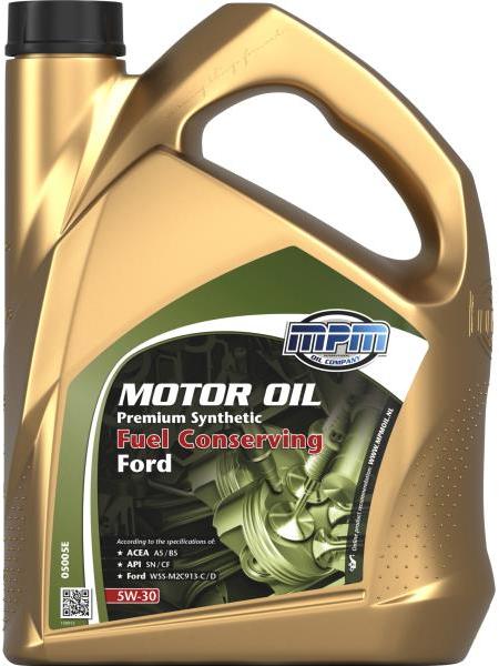MPM 05005E Premium Synthetic Fuel Conserving Ford motorolaj, 5W-30, 5liter Ez a prémium szintetikus üzemanyag-megtakarító MID SAPS (ACEA C2) motorolaj PSA M2C913-C 2290 specifikációval kifejezetten a Citroën és Peugeot személyautók, valamint könnyű haszongépjárművek számára lett kifejlesztve. Optimális védelmet nyújt a dízel, benzin és LPG motorok számára. Azoknál a járm