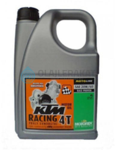 20W-60 motorkerékpár olaj A Motorex KTM Racing 4T 20W-60 egy nagy teljesítményű, aranybarna színű, teljesen szintetikus verseny motorolaj KTM versenymotorok számára. Ezt a kimondottan a versenysport számára kifejlesztett motorolajat értékes alapolajokból és magas értékű adalékokból hozták létre. Az ideális súrlódási jellemzők tökéletes működést garantálnak a többl