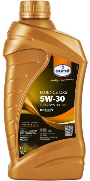 Specifikációk: API SN/CF ACEA C3 MB 229.52 gyártói jóváhagyás MB 229.51 gyártói jóváhagyás MB 229.31 BMW Longlife-04 BMW LL-04 gyártói jóváhagyás Opel OV 040 1547 - D30 gyártói jóváhagyás VW 502.00, VW 505.01 és VW 505.00 Opel GM dexos 2 Opel GM-LL-A-025 Ople GM-LL-B-025 Opel GM Dexos D Fiat 9.55535-S3 Az Eurol Fluence DXS 5W-30 egy teljesen szintetikus motorolaj személygé