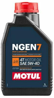innovatív, a fenntarthatóság jegyében készített, szintetikus bázísú, észterekkel erősített motorolaj négyütemű motorkerékpárokhoz A Motul NGen7 4T 5 W-40 innovatív, a fenntarthatóság jegyében készített motorolaj négyütemű motorkerékpárokhoz. Szintetikus észterekkel, magas színvonalat képviselő alapolajokkal, nagy teljesítményű adalékanyagokkal és 75%-ban regene