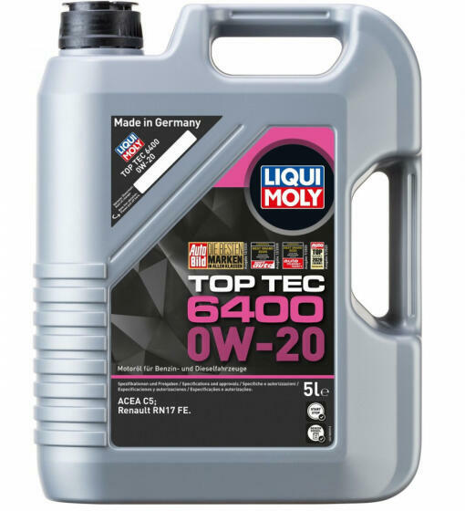 2017. utáni Renault/Dacia benzin- és dízelmotorokhoz, beleértve a common rail technológiát is, ahol a Renault RN17FE szabvány val előírva A Liqui Moly Top Tec 6400 0W-20 egy prémium szintetikus technológián alapuló, alacsony súrlódású motorolaj. Megfelel az egyre kisebb és nagyobb teljesítményű motorok fejlődéséből eredő követelményeknek a hatékonyabb járművek és az