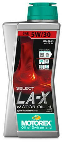 MOTOREX SELECT LA-X 5W-30 (1 L) (C2, C3 BMW, MB, VW, Fiat, GM) , Jóváhagyások: ACEA C2;C3; API SN; BMW LL-04; GM DEXOS 2; MB 229,52; VW 502.00, VW 505.01; FIAT 955535-S3 Szintetikus Hi-tech motorolaj, amelynek alapját a LowSAPS technológia adja. Mérsékli a koromszemcse kibocsátást, nagyon könnyed folyást biztosít. Használható kipufogógáz utókezelős LL szervizes benzines és díze