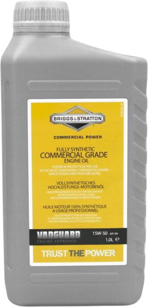 Briggs & Stratton 4T 15W-50 VanguardTeljesen szintetikus nagy teljesítményű 15W-50 motorolaj, amely hosszabb ideig tartja tökéletes állapotvan Briggs and Sratton kültéri erőgépeit. Kiváló védelem a legigényesebb kereskedelmi motor-alkalmazásokhoz és sebességváltókhoz. Specifikációk:SAE 15W-50 API SN Vanguard motor jóváhagyásKiszerelés: 1 liter