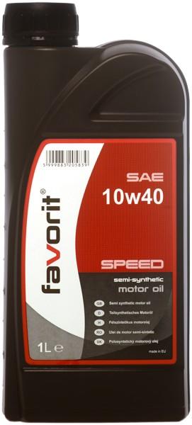 10W40 motorolaj - Favorit Speed - 1liter Magas teljesítményű rész-szintetikus motorolaj. Kimagasló motorvédelmet és tisztaságot biztosít a korszerű személy- és kishaszon gépjárművek normál illetve turbófeltöltésű benzines, dízel és gázüzemű motorjainak. A motor hosszú ideig megőrzi kifogástalan teljesítőképességét. Összetevői révén nagymértékben csökken a hi