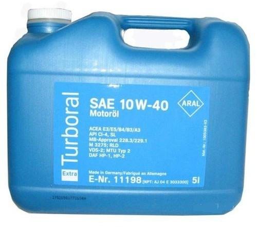 Aral Turboral 10W-40 motorolaj 5lit. Részben szintetikus, nagy teljesítményű, könnyű futást biztosító motorolaj benzin és dízel üzemre. Turbófeltöltéses Diesel-motoroknál különösen ajánlott. Érzékelhetõ üzemanyag megtakarítást eredményez a könnyű hidegindítási tulajdonsága és a csökkentett súrlódási vesztesége révén. Kitűnõ kopás elleni védelem, magasfok