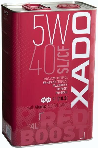 Xado Atomic 5W-40 SL/CF Red BoostPrémium motorolaj, amely REVITALIZANT-t tartalmaz (RF=10.5). A XADO Atomic Oil 5W-40 SL/CF RED BOOST egy könnyen folyó, többfokozatú motorolaj, amely egyaránt alkalmazható személy- és könnyű tehergépjárművek benzin-, LPG- és dízelmotorjaiban. Ideálisan alkalmas a modern többszelepes motorokhoz, beleértve az intercoolerrel rendelkező motorokat is