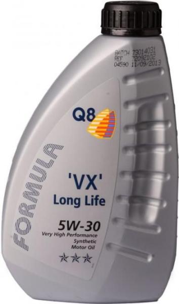 KIFUTÓ TERMÉK, HELYETTE A Q8 FORMULA PRESTIGE V 5W-30 , AMELY MÁR RENDELHETŐ. Ez a termék kivételes üzemanyag-takarékosságot és az osztály legjobb motorvédelmét nyújtja, különösen a kopás és az iszap ellen, még a legigényesebb körülmények között is. Meghaladja az ACEA C3-ot és a VW 504.00 / 507.00 szigorú követelményeit. Alkalmazás A Q8 Formula VX hosszú élettartam