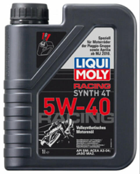 5W-40 motorkerékpár olaj Liqui Moly Motorbike 4T Street Race Synth 5w-40 motorkerékpár olaj: Normál és különösen nagy terhelést jelentő üzemeltetési körülményeknek kitett, lég- és vízhűtéses, 4 ütemű motorokhoz fejlesztve. Sportos igénybevételre. Alkalmas olajos tengelykapcsolós vagy anélküli motorokhoz.