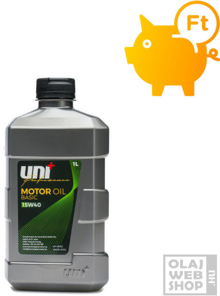 pénztárcabarát 15W40-es motorolaj régebbi benzinesekhez és szívódízelekhez A Uni+ Basic 15W-40 egy többfokozatú, egész évben használható motorolaj kelet-európai és az 1989 előtt gyártott nyugati, valamint távol-keleti benzinüzemű személy- és kishaszonjárművek számára. Használható turbófeltöltő nélküli dízelmotorokhoz is. Teljesítményszint: API SF/CC