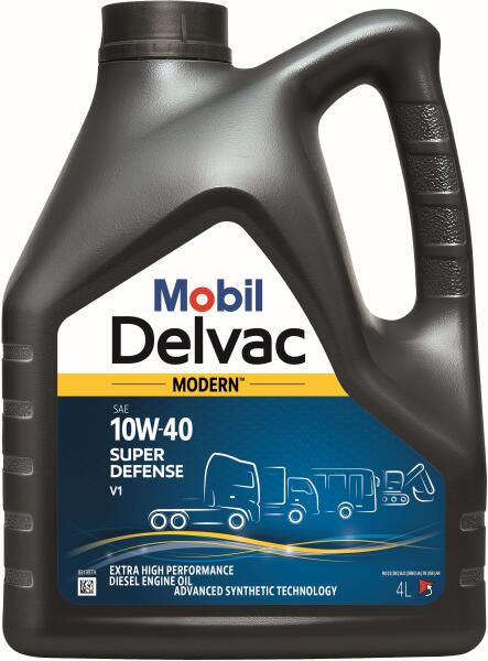 (régi megnevezés: MOBIL DELVAC XHP EXTRA 10W-40) A Mobil Delvac Modern 10W-40 Super Defense V1 egy fejlett szintetikus technológiájú, extra nagy teljesítményű dízelmotorolaj, amelyet úgy terveztek, hogy kiváló kenést biztosítson a súlyos közúti és terepen használt modern, nagy teljesítményű dízelmotorokhoz. A nagy teljesítményű, alacsony károsanyag-kibocsátású motorok