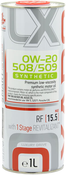 XADO Luxury Drive 0W-20 508/509 nagy teljesítményű szintetikus motorolaj Univerzális, Volkswagen, Audi, Skoda, Seat benzin- és dízelmotorokhoz használható, VW 508.00 / 509.00 specifikációjú motorolajat igényelnek. Speciális emelt adaléktartalma (15%) lehetővé teszi, hogy a motor extrém terhelés mellett is kifogástalanul működjön. A Xado Luxury Drive motorolaj használatával