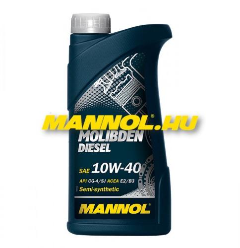 MOLIBDEN DIESEL SAE 10W-40 API CF-4 Félszintetikus motorolaj molibdén szulfidos adalékkal Mannol Molibden Diesel 10W-40 Univerzális téli-nyári, félszintetikus motorolaj, kifejlesztett az extrém módon terhelt diesel motorokhoz. Hatásosan csökkenti motor kopását összes üzemeltetési módozatokban speciális, működő felületeken képződő, védőrétegnek köszönhetően, ami az ex