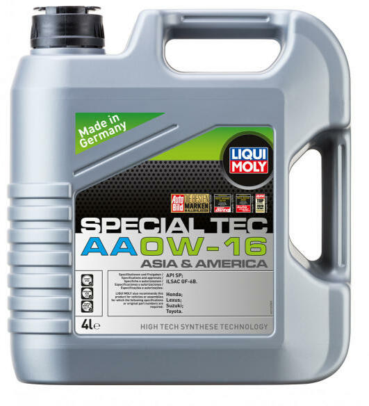 0W-16 motorolaj ázsiai és amerikai járművek számára A Liqui Moly Special Tec Asia & America AA 0W-16 motorolaj egy prémium osztályú kis súrlódású motorolaj ázsiai és amerikai járművek számára. Kiemelkedő kopás elleni védelem, csökkenti az olaj- és üzemanyag-fogyasztást, tisztán tartja a motort és biztosítja az olaj gyors behatolását. Tulajdonságok - optimális o