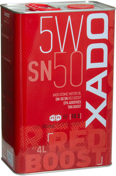 Revitalizáló tartalmú félszintetikus motorolaj - 4 liter - (4 db/karton) RED BOOST TERMÉKEK XADO Atomic Oil 5W-50 SN Red Boost Modern, nagy teljesítményű motorolaj. REVITALIZANT® [RF=10.5*] revitalizálót tartalmaz. XADO Atomic Oil 5W-50 SN Red Boost egy modern, univerzális motorolaj személygépkocsik és könnyű hasznongépjárművek beznin- és dízelmorojai számára. Használható