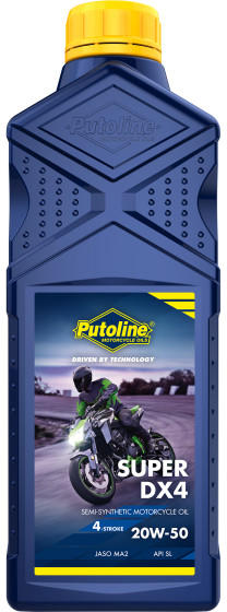 PUTOLINE Super DX 4 20W-50 Fél-szintetikus 4 ütemű motorolaj utcai országúti motorkerékpárokhoz. Tulajdonságok: API SL / JASO MA2 Kiszerelés: 1 liter A Super DX4 20W-50 egy 4 ütemű motorkerékpár motorolaj. A termék különleges összetétele megfelel a modern 4 ütemű motorok egyre növekvő követelményeinek. Az egyedülálló, félszintetikus formula meghaladja a vezető gyártó