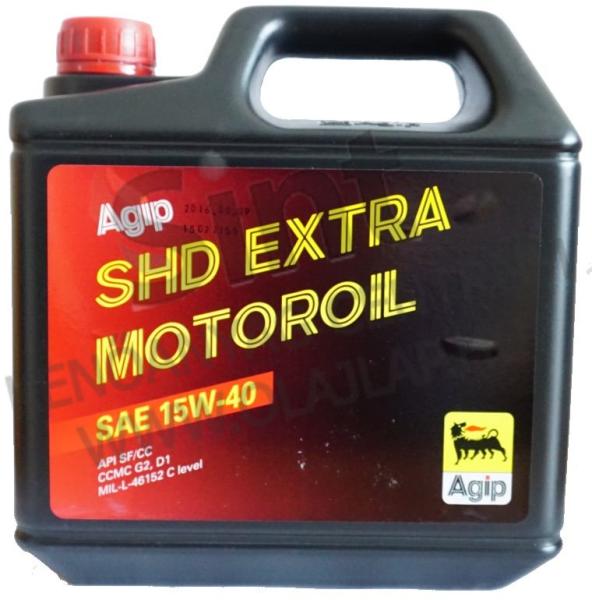6db/karton Az Agip SHD EXTRA 15W-40 motorolaj benzin és dízelmotorok kenőolaja. Kiváló minőségű, magas viszkozitási indexű, szintetikus bázisolaj-komponenseket és gondosan megválasztott detergens-diszpergens, oxidációgátló, korróziógátló, kopás-csökkento, habzásgátló és dermedéspont csökkentő adalékot tartalmaz. Kopáscsökkentő tulajdonsága hosszú élettartamot g