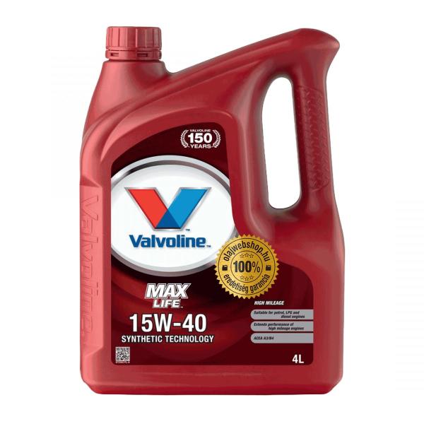 Termék részletekValvoline 872362 Maxlife 15W-40 motorolaj, 4lit A Valvoline MaxLife 15W-40 prémium minõségű hagyományos (félszintetikus) motorolaj, ami csökkenti az olajfogyasztást, emellett számos öregedési jelenséget lecsökkent, megszűntet. Használata minden turbós és turbó nélküli benzines, LPG, vagy dízel üzemű személygépjárműhöz és kisteherautókhoz javasolt 200.000 km felett. Me